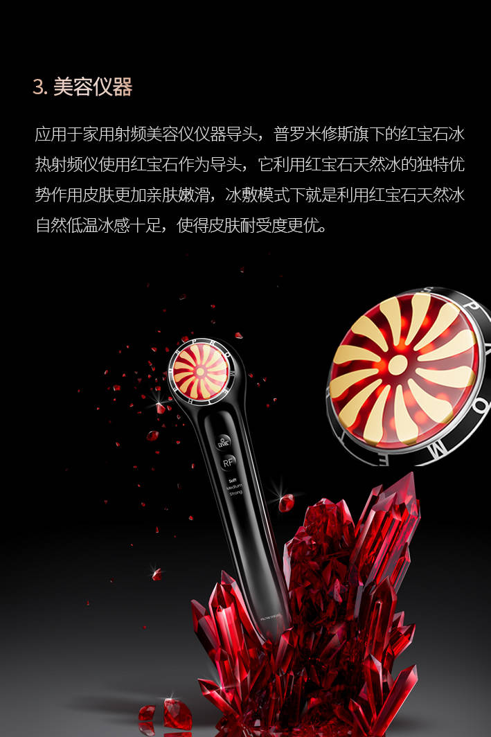 3.美容仪器:使用于家用射频美容仪仪器导头,红宝石以其奇特的色彩和崇高的气质,